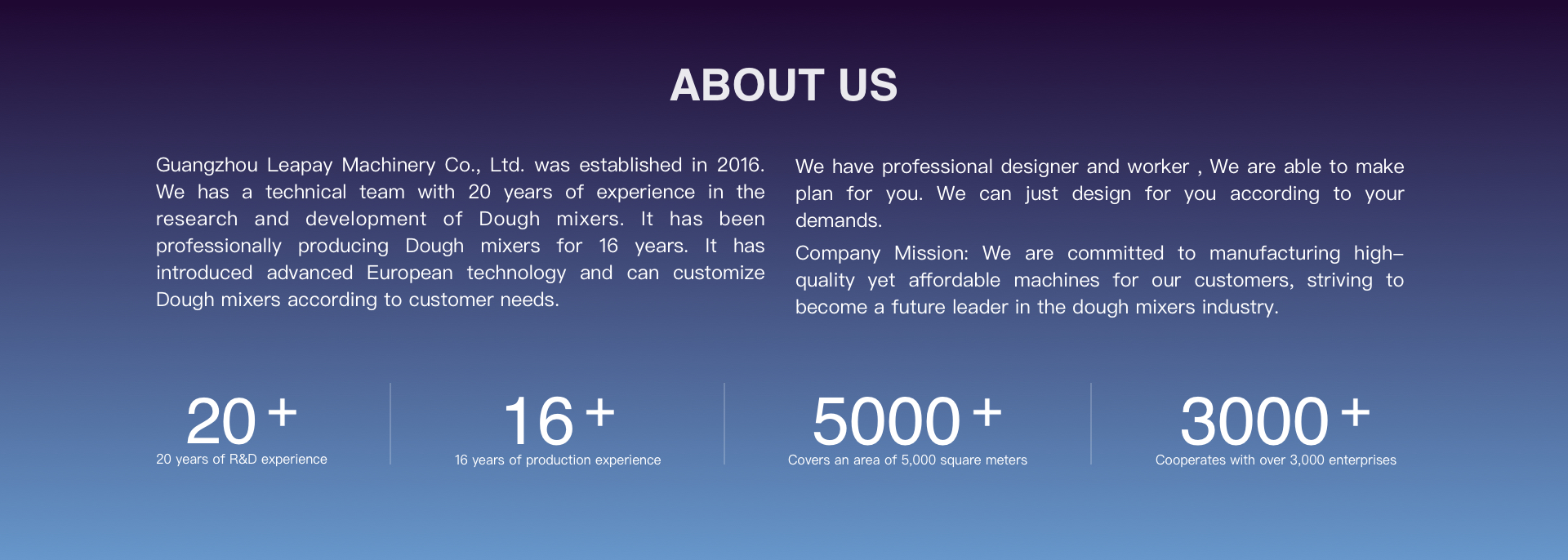We are a factory with 20 years of experience in manufacturing dough mixers.